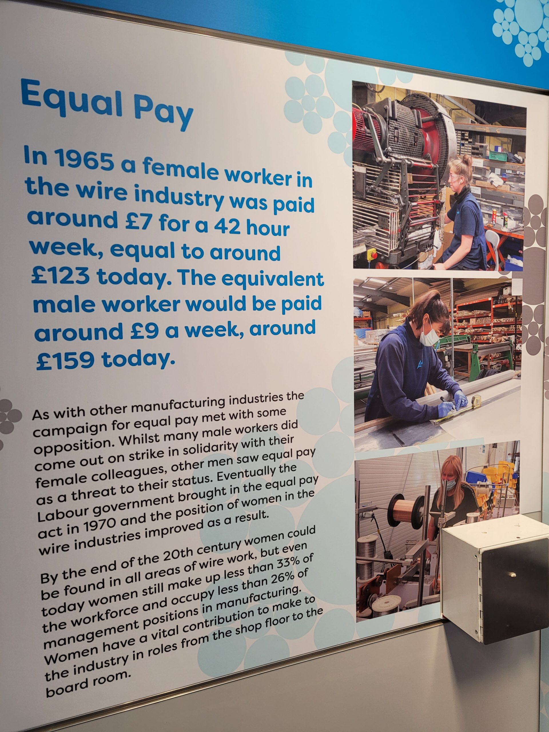 This time Christine has used Locker wire mesh to create the centre piece of the exhibition – a statue of ‘Winnie’. Winnie represents an early female wire worker, fitting in with the exhibition’s focus of illustrating how the role of women in the wire industry has changed over the years.